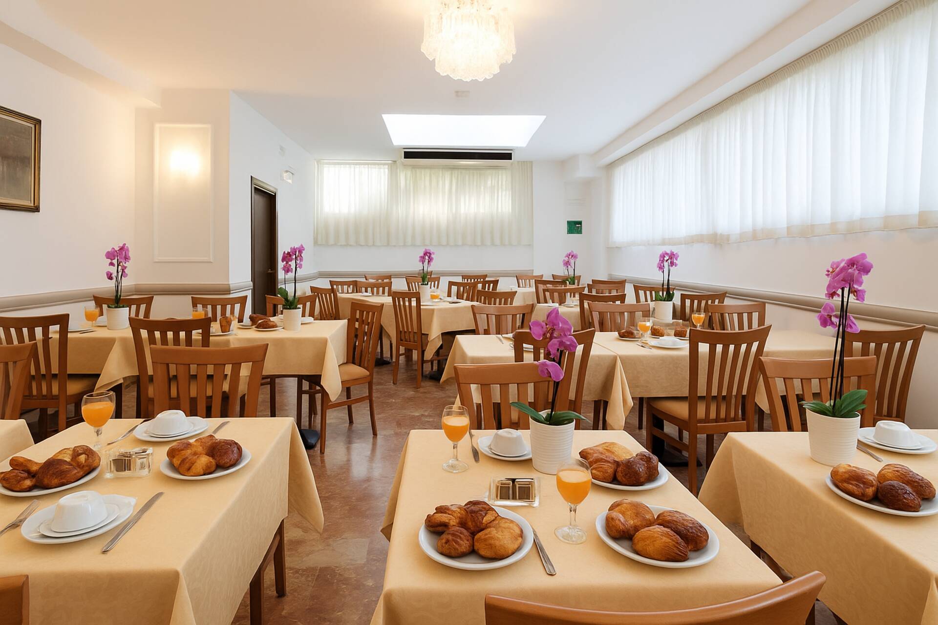 Le camere dell’Hotel Holiday Prime sono pensate per offrirti un’esperienza piacevole e rilassante, in un ambiente semplice, accogliente e dotato di tutto ciò che serve per sentirsi bene. Che sia una fuga romantica, un viaggio in famiglia o un momento di relax tutto per te, troverai il comfort che cerchi in un ambiente dove il tempo sembra rallentare.La Colazione